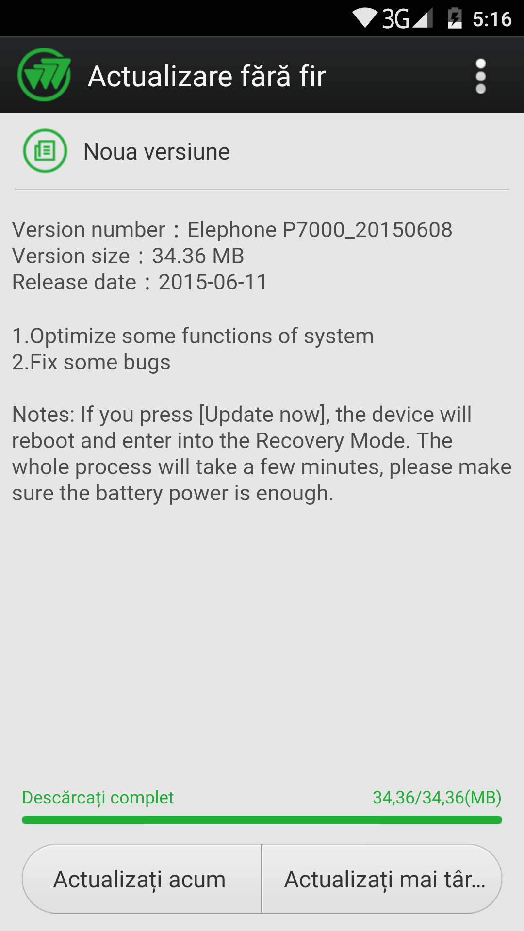 Acestea sunt câteva probleme vizibile găsite de mine în cele câteva zile de utilizare. Din fericire, aceste erori au fost remediate de Elephone printr-un update care este disponibil în setări încă de când deschizi telefonul. Dar şi aici există o uşoară complicaţie.