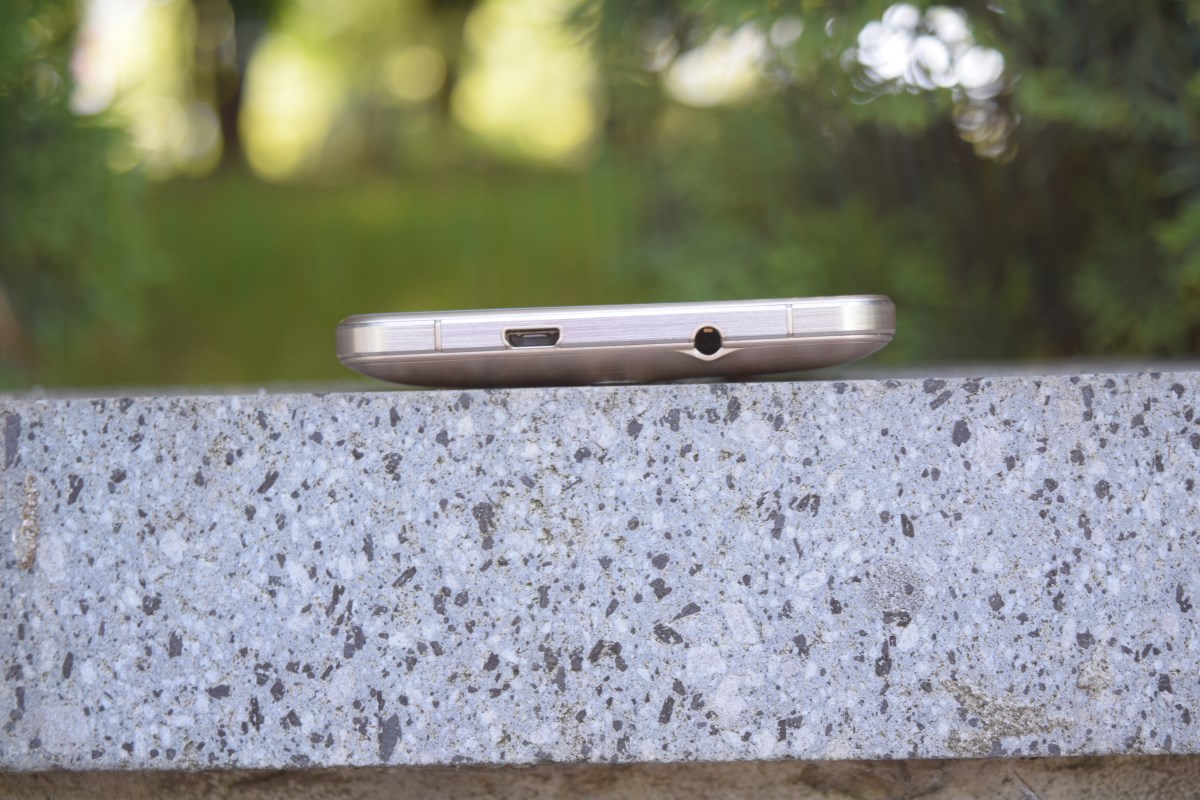 În exterior regăsim jack-ul de 3.5 mm şi portul microUSB în zona superioară, în lateral dreapta se află butonul de power, în timp ce în lateral stânga se găsesc tastele pentru reglarea volumului.