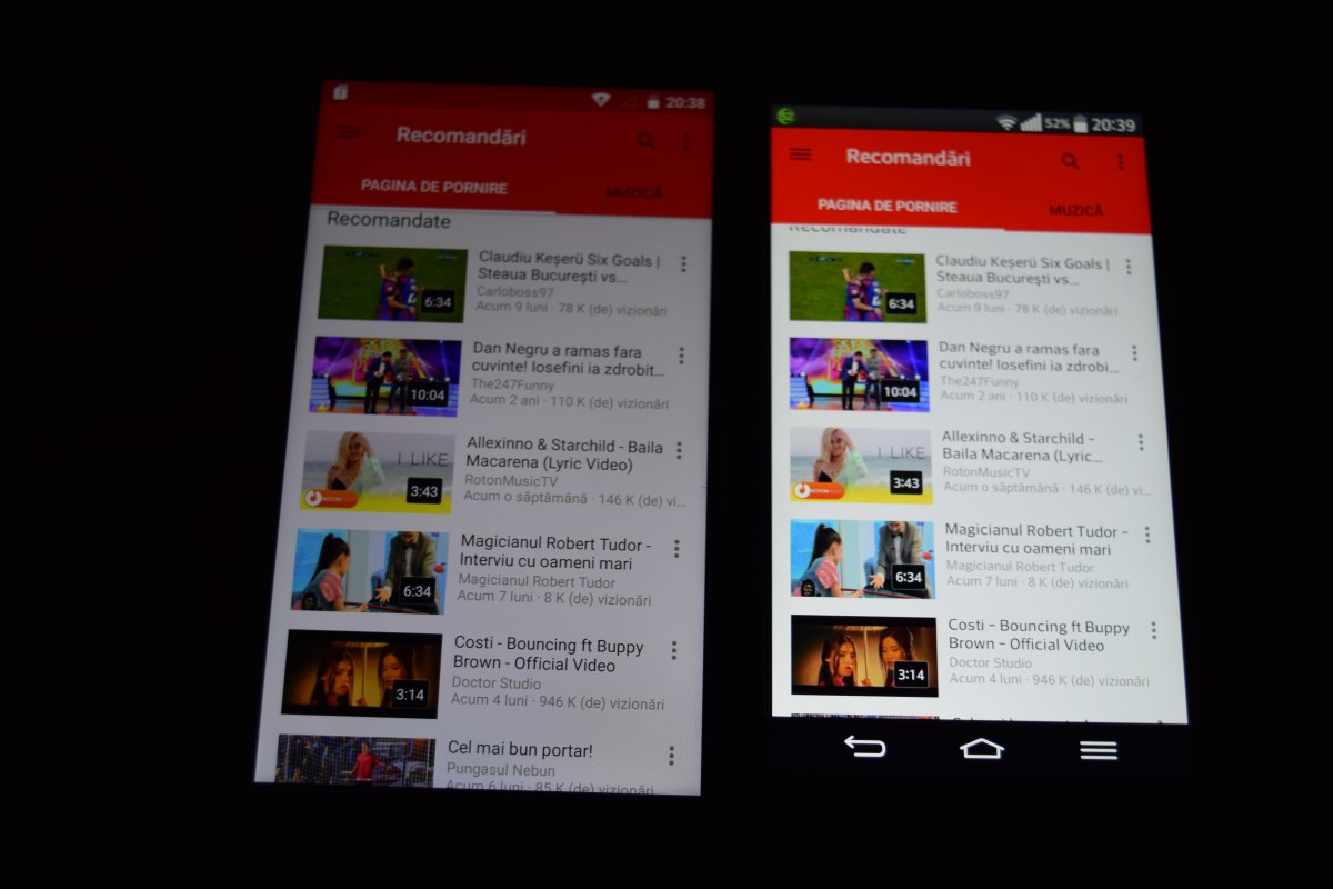 Luminozitate înainte de update (stânga Elephone P7000 Pioneer, dreapta LG G2)