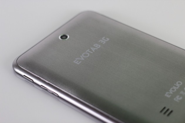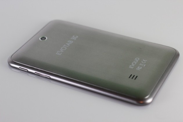 Când privește spatele tabletei ai impresia că s-a utilizat aluminiu, dar de fapt este un plastic frumos polișat și cu protuberanțe abia sesizabile ce contribuie la un grip ok. Nu dă impresia a-ți scăpa din mână. Evolio Evotab 3G poate fi manevrată în anumite situații și cu o singură mână.