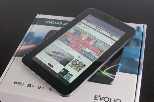 Evolio Evotab 3G dă impresia de rezistență în timp, fără plastice care să scoată sunete deranjante. Este una dintre acele tablete accesibile ca preț și cu formă plăcută, materiale ok. Nu le-aș reproșa decât zona cu boxa din spate. Presupun că producătorul device-ului nu s-a gândit să dispună micuța boxă într-un mod ceva mai ușor intruziv.