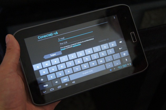 M-am jucat puțin pe ea. Îmi place display-ul și designul care a evoluat mult de la Evotab 2. Materialele sunt de o calitate mai bună, grip oferit de un alt spate al tabletei. Pachetul conține și car kit-ul pentru automobil pe lângă accesoriile obișnuite. Camera foto de 2 Megapixeli a fost dispusă la bază, lângă butonul de Home. S-au gândit că va fi utilizată mai ales în mod landscape. Ar fi fost și mai ok dacă avea și o cameră foto pe spate, puteai să filmezi ce se întâmplă în fața automobilului, nu mai aveai nevoie de o cameră foto distinctă.