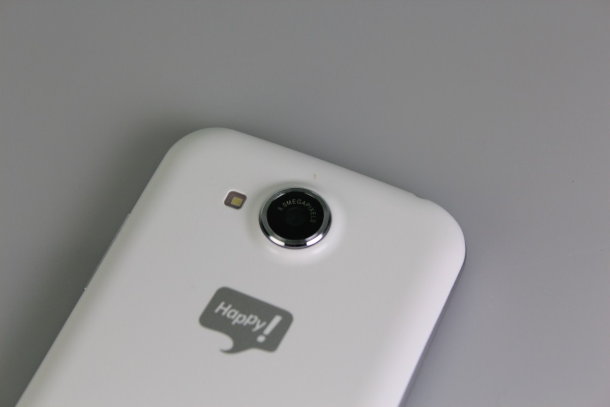 Notă discordantă face senzorul de 8 Megapixeli ce iese puternic din carcasă, un inel argintiu îl înconjoară și-i predispus la zgârieturi. De aceea recomand ca Evolio Happy să fie accesorizat de la bun început cu o husă, Evolio din câte știu are câteva oferte în acest sens.