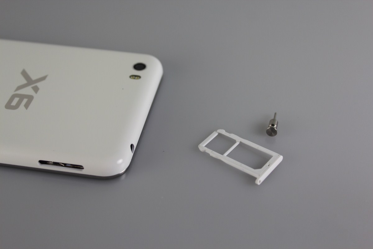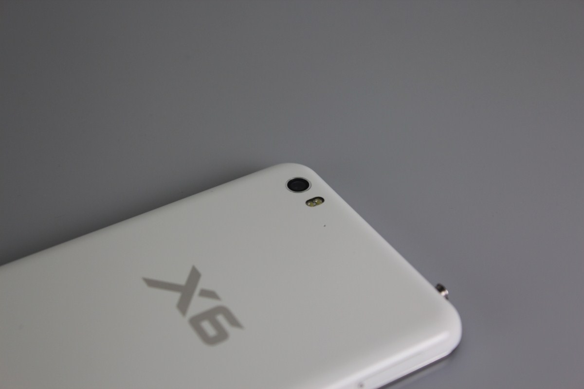 Evolio X6 = iPhone 5C pe display de 5.5 inch. La baza ecranului sunt trei taste capacitive, iar tasta centrală copiază tasta Home de la telefoanele Apple. Acolo se află și led-ul de notificare ce pulsează o lumină albă când sunt diverse notificări. Nu se oferă acces la bateria de 3150 mAh, carcasă din plastic alb, lucios. Adună amprentele rapid. Recomand scoaterea agrafei din jack-ul de 3.5 mm, strică aspectul general al phabletului.