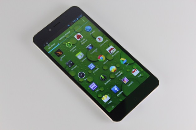 IPS de 5.5 inch cu rezoluție FHD / 1920×1080 pixeli, protejat cu sticlă Corning Gorilla Glass 2. Aici nu am ce să-i reproșez. S-a mers pe mâna unui IPS destul de bine calibrat, luminos, unghi bun de vizualizare. La baza sa se află tastele capacitive clasice pentru un telefon Android ( de la stânga la dreapta, Mai multe detalii în aplicații / customizare a ecranului de start, Ieșire pe ecranul de start, Back). Tasta centrală imită butonul Home de la iPhone, iar celelalte două au un design diferit de ce am întâlnit până acum (puncte poziționate în diferite forme geometrice).