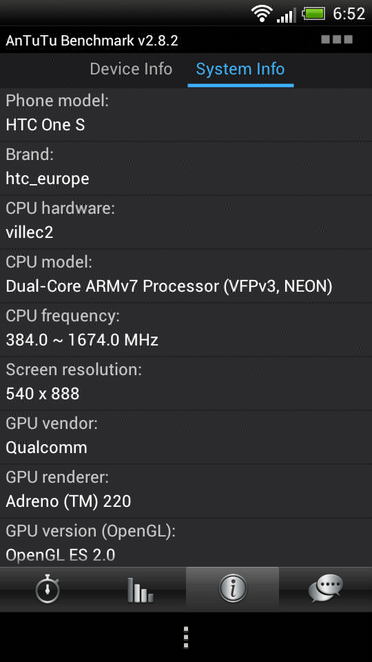 Modelele din România ar trebui să fie cu S4, iar cele cu S3 se spunea că vor fi vândute doar în China și Taiwan. Să vedem ce rezultate a scos HTC One S  – ambele variante – în câteva teste de benchmark cunoscute în universul telefoanelor Android. Sincer, am remarcat că modelul One S de la Orange este cu Snapdragon S3 după ce am văzut că dispunea de Adreno 220 în loc de Adreno 225 cum știam eu că ar trebui să fie. Noroc că HTC One S-ul de la magazinul online era cel cu procesor din generația 2012.