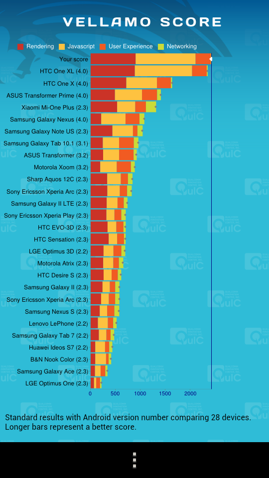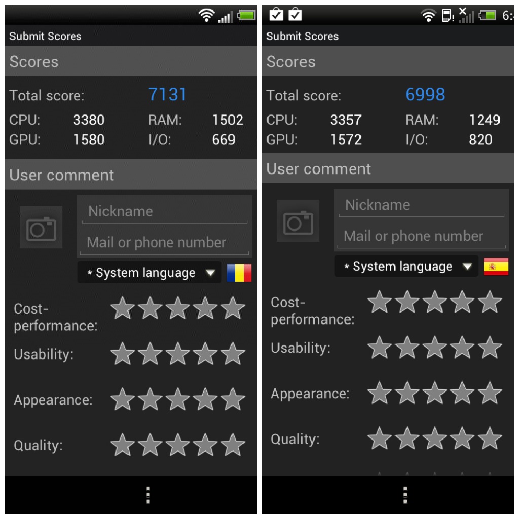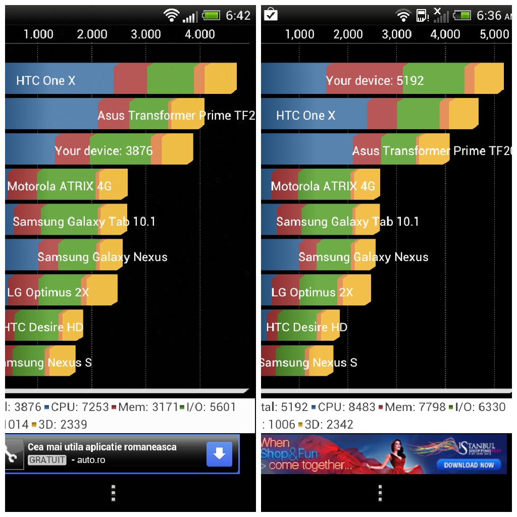 Observați că HTC One S cu Qualcomm Snapdragon S4 la 1.5 GHz și Adreno 225 iese mai bine în testele de benchmark decât colegul său cu S3 și Adreno 220, diferența este uneori destul de mare între cele două telefoane HTC. Așa că trebuie să vă informați cu atenție și să întrebați înainte de a le achiziționa.