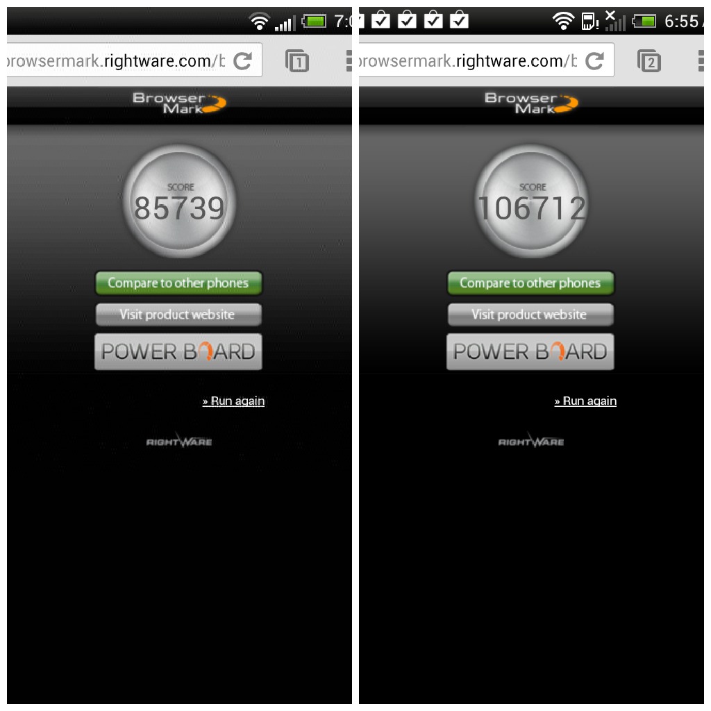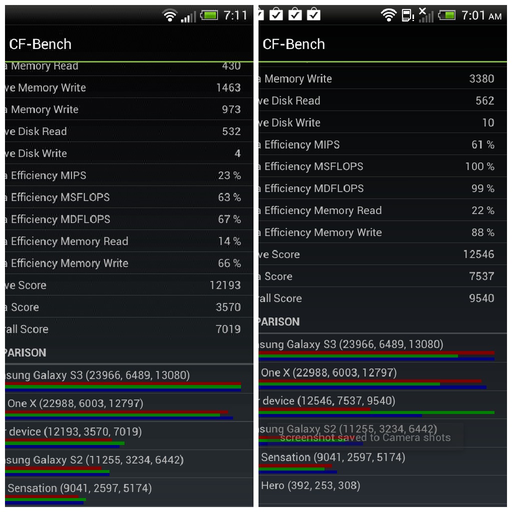 Update: Revin cu o serie de screenshot puse în paralel. Primul este Snapdragon S3, iar la dreapta sunt rezultatele înregistrate de către Snapdragon S4: