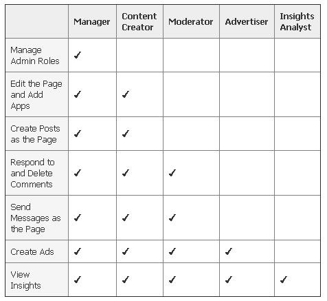 Mai există şi posibilitatea de a şterge un mesaj programat. Utilizând Manage -> Use Activity Log, ajungeţi la toate mesajele programate care pot fi şterse sau modificate. O altă noutate importantă pentru paginile de brand introdusă de Facebook recent, este introducerea de noi niveluri de acces pentru administratorii unei pagini. Astfel, dacă până acum cel care primea acces la administrarea unei pagini putea adăuga noi admini, şterge sau posta mesaje noi ori verifica statisticile, de acum adminii pot oferi acees utilizatorilor în 5 categorii:
