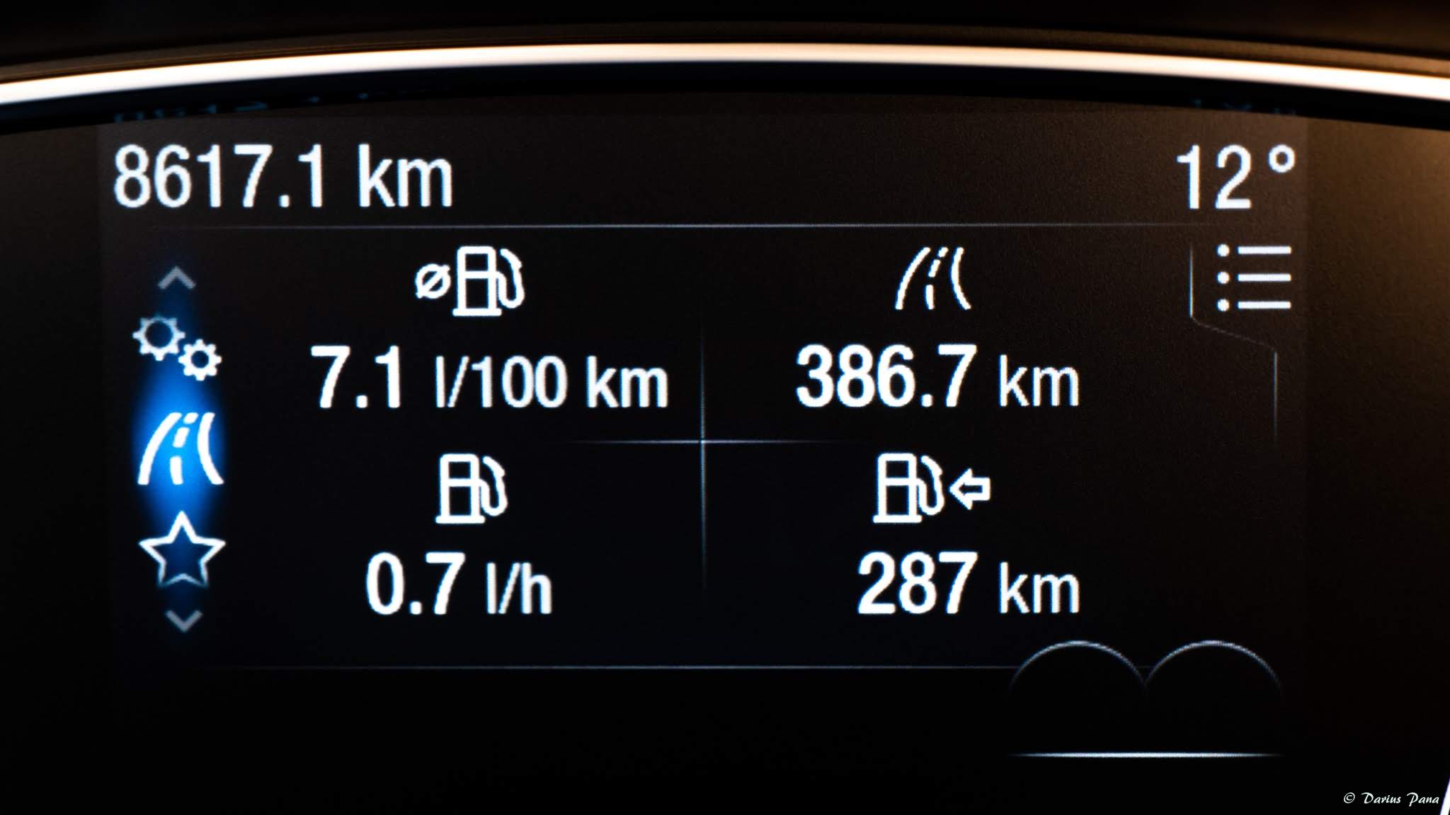 După un traseu lung de aproape 400 de km, în majoritate reprezentat de drumuri extra urbane, dar și cu zone de serpentine, eu am obținut un foarte bun 7.1 l/100 km. Excese am făcut câteva, dar într-adevăr acest consum nu a luat în calcul și testele de accelerație 0-100 și reprize. După acestea, consumul mediu a urcat la 8.6 l/100 km.