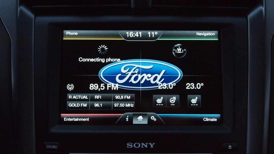 - sistem de infotainment SYNC Gen II cu display de 8 inci color cu touch screen, sunet Sony cu 9 difuzoare, comenzi audio pe volan, navigație, conectivitate și streaming prin bluetooth, conexiune USB. Grafica sistemului SYNC II pare ușor depășită de vremuri, deși funcțiile sunt în trend;