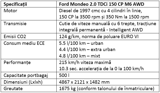 Specificații pentru Ford Mondeo 2.0 TDCi 150 CP M6 AWD