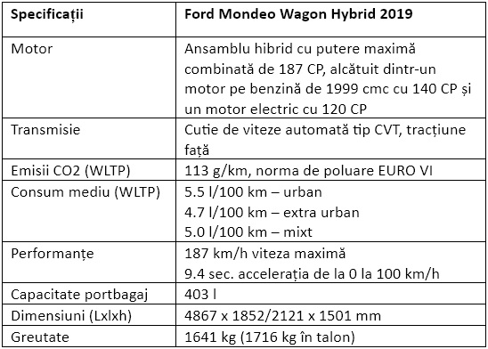 Specificații pentru Ford Mondeo Wagon Hybrid 2019