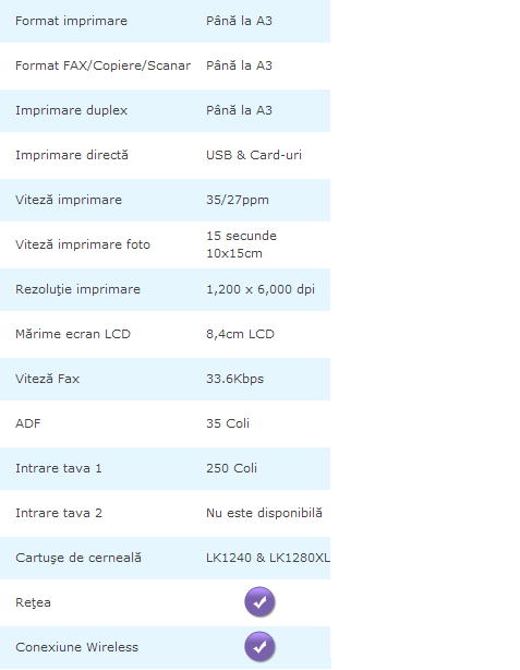 Acest performer multifuncțional realizează imprimare în format A3, scanare, copiere şi faxare în format A4. Unul dintre avantajele acestuia în materie de costuri ar fi imprimarea față-verso ce reprezintă o economie semnificativă a consumului de hârtie. În ceea ce privește timpul, viteza de imprimare constituie un alt plus, multifuncționala putând imprima 4 fotografii 10×15 cm pe minut.