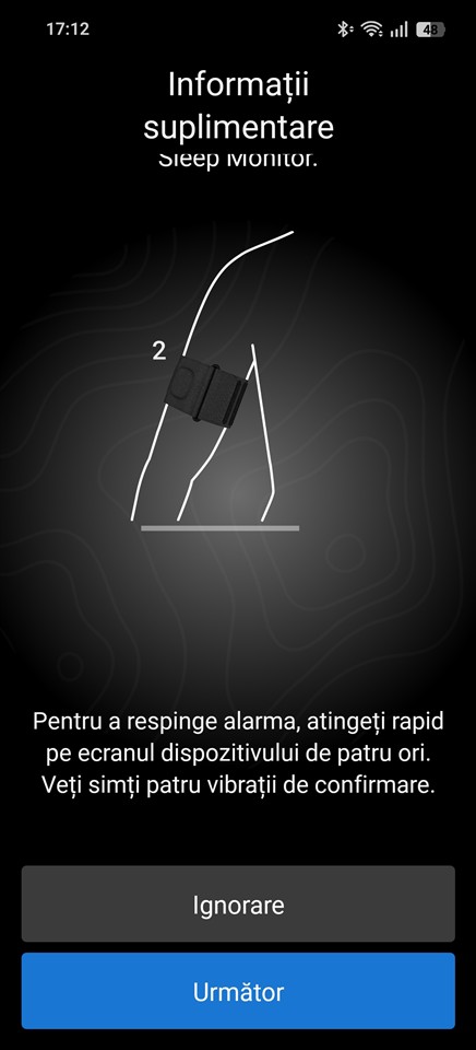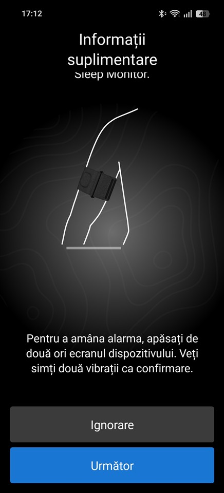 Există și un mic minus la partea de alarmă, în sensul că monitorizarea somnului se oprește odată ce alarma s-a activat. Adică, indiferent dacă dai Snooze (prin două atingeri rapide) și amâni astfel alarma cu 10 minute sau dacă pur și simplu te culci la loc după ce Garmin Index Sleep Monitor a dat alarma, banda va încheia monitorizarea somnului. Nu mi se pare cea mai corectă abordare, atât timp cât ai banda la braț mi se pare normal ca ea să continue monitorizarea…