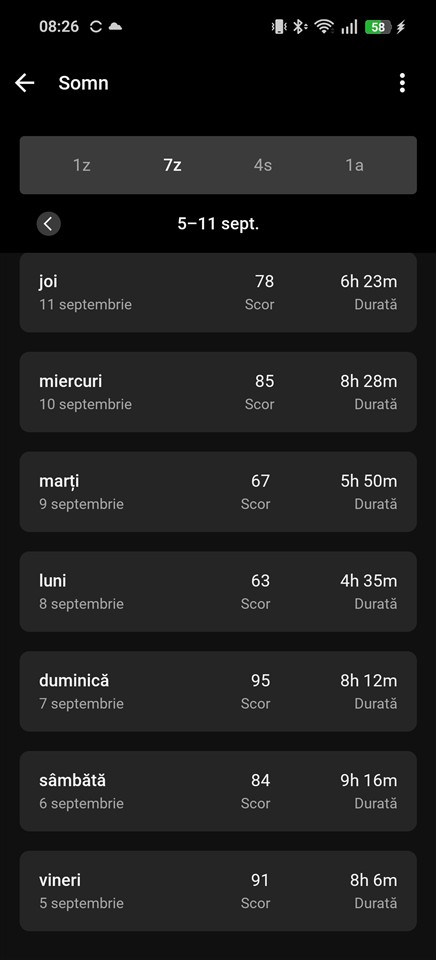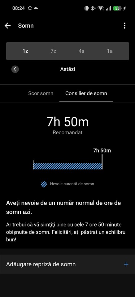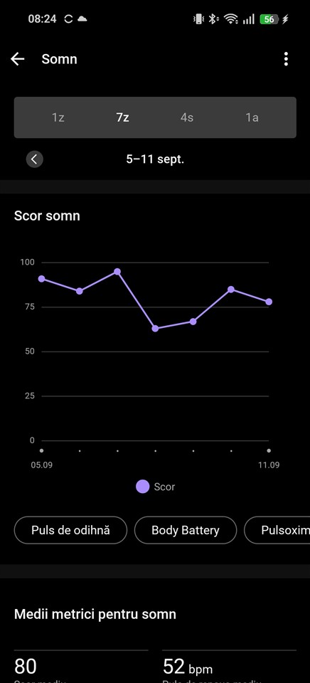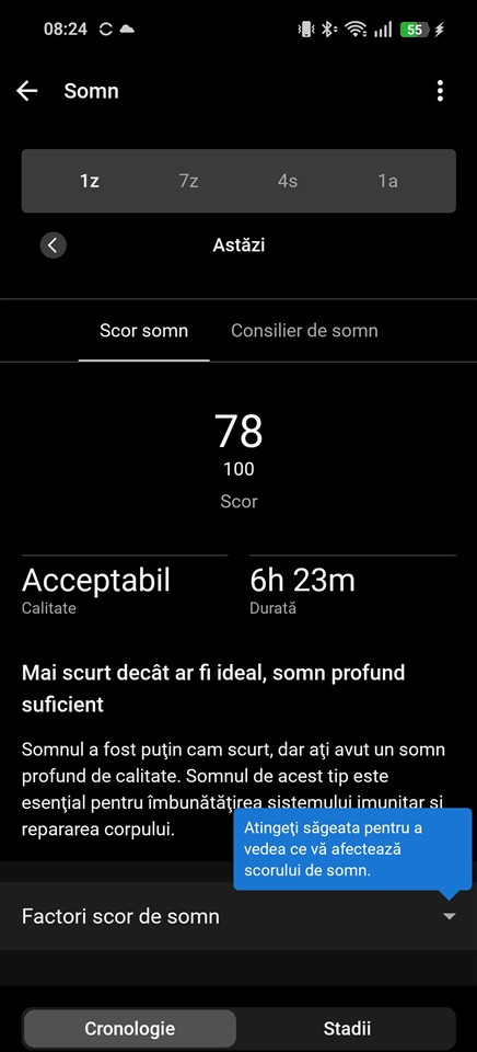 🔺Cele 7 nopți de monitorizare a somnului promise ca autonomie pot fi mai puține dacă între timp mai sunt instalate ceva actualizări direct pe dispozitiv.