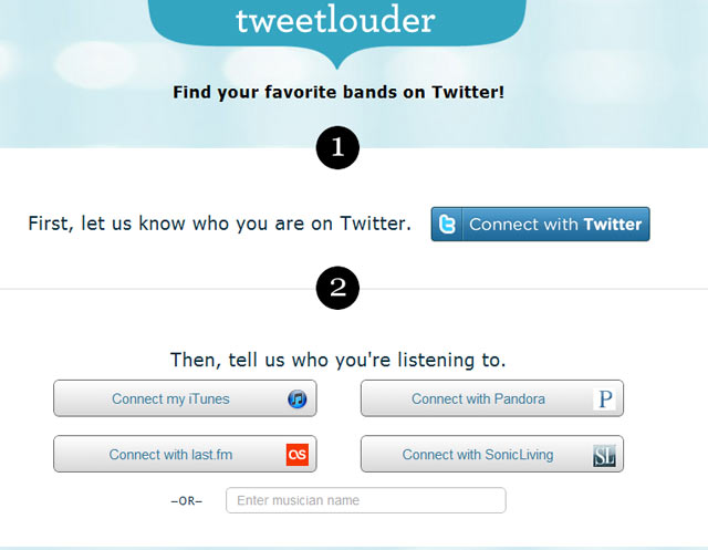 Tuturor ne place muzica, indiferent ce gen e. Unii dintre noi avem un cont pe Twitter. Unora le-ar plăcea să fie conectați de pe Twitter la cântăreții sau trupele preferate, dar uneori din lipsa de timp nu ai cum să stai și să cauți printre multele pagini deschise pentru acel artist pe care dorim să îl urmărim. Pentru asta TweetLouder, o nouă aplicație pusă la dispoziția utilizatorilor, scanează iTunes, Pandora, Last.fm și SonicLiving pentru a vă găsi trupele preferate și în mod automat vă arată și conturile lor de Twitter, astfel încât veți putea decide pe cine să urmăriți și pe cine nu.