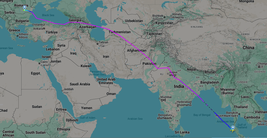 Am zburat cu HiSky şi am avut ceva emoţii când am văzut că traseul nostru trece prin Afghanistan, pe lângă graniţa cu Iranul (pe hartă Teheranul părea foarte aproape). Actualul conflict este imprevizibil şi nu se ştie niciodată.