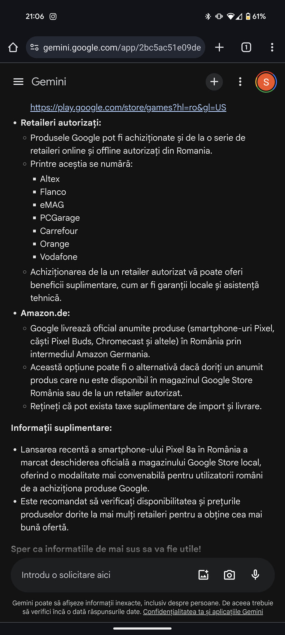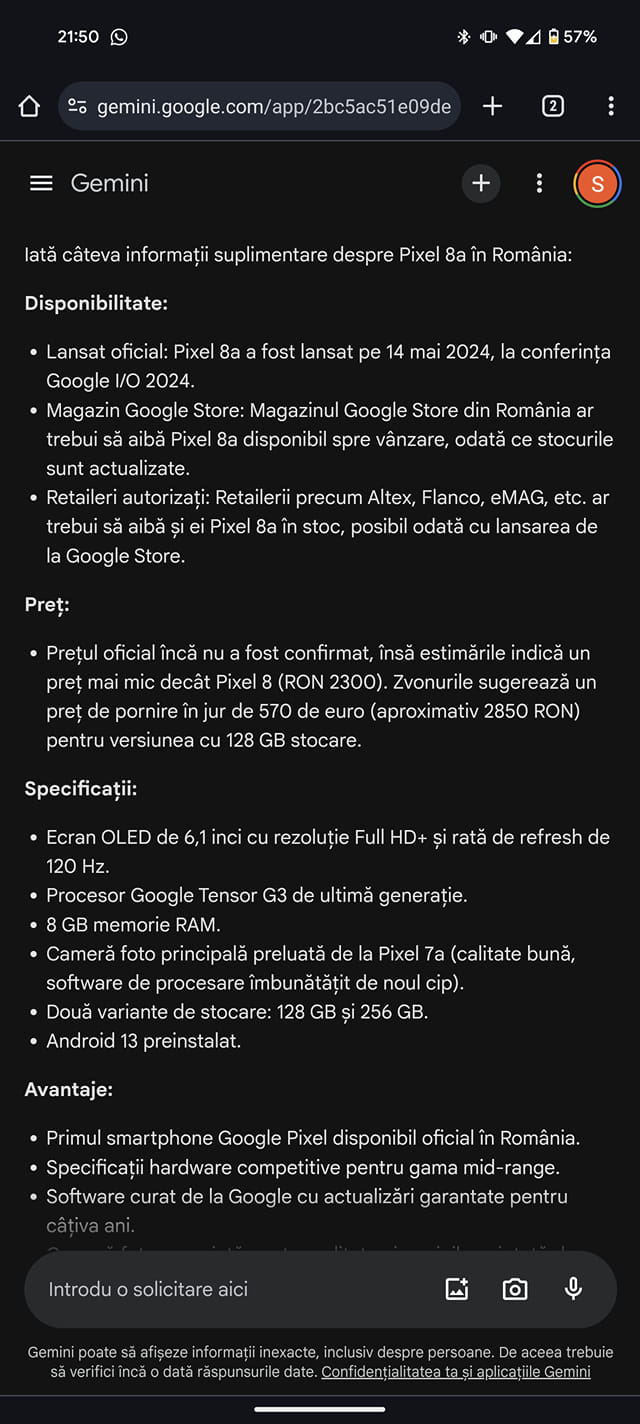 În contextul în care Gemini nu face decât să confirme ceea ce se zvonea prin diverse alte surse, nu putem decât să îl credem pe cuvânt. Foarte probabil şi seria Google Pixel 9 ce urmează a fi lansată în toamnă, va ajunge la rândul său pe canal oficial în România.
