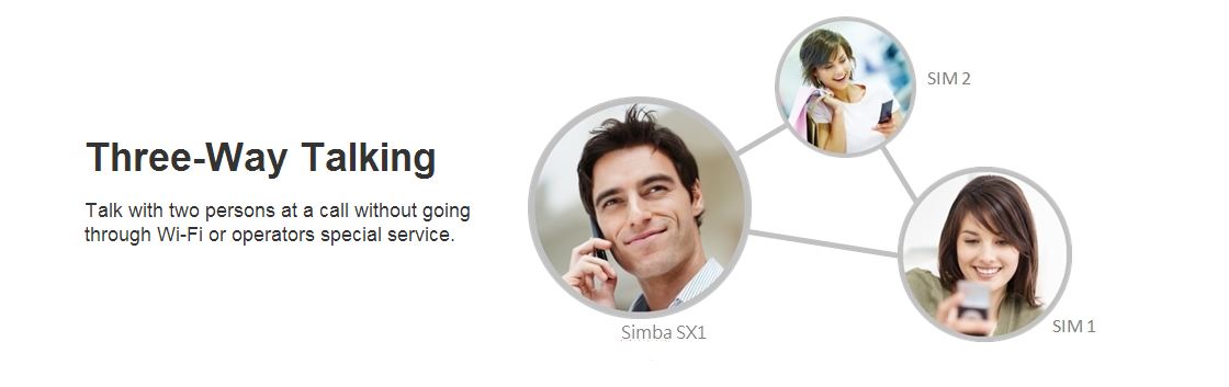 Simba SX1 menține cele două SIM-uri active în mod continuu. Atunci când ești într-o conversație pe unul dintre SIM-uri poți să pui apelul în așteptare și să preiei alt apel de pe celălalt SIM pe care să-l reunești cu conversația inițială într-un apel de tip conferință. Sper că m-am făcut înțeleș și ați perceput despre ce este vorba.