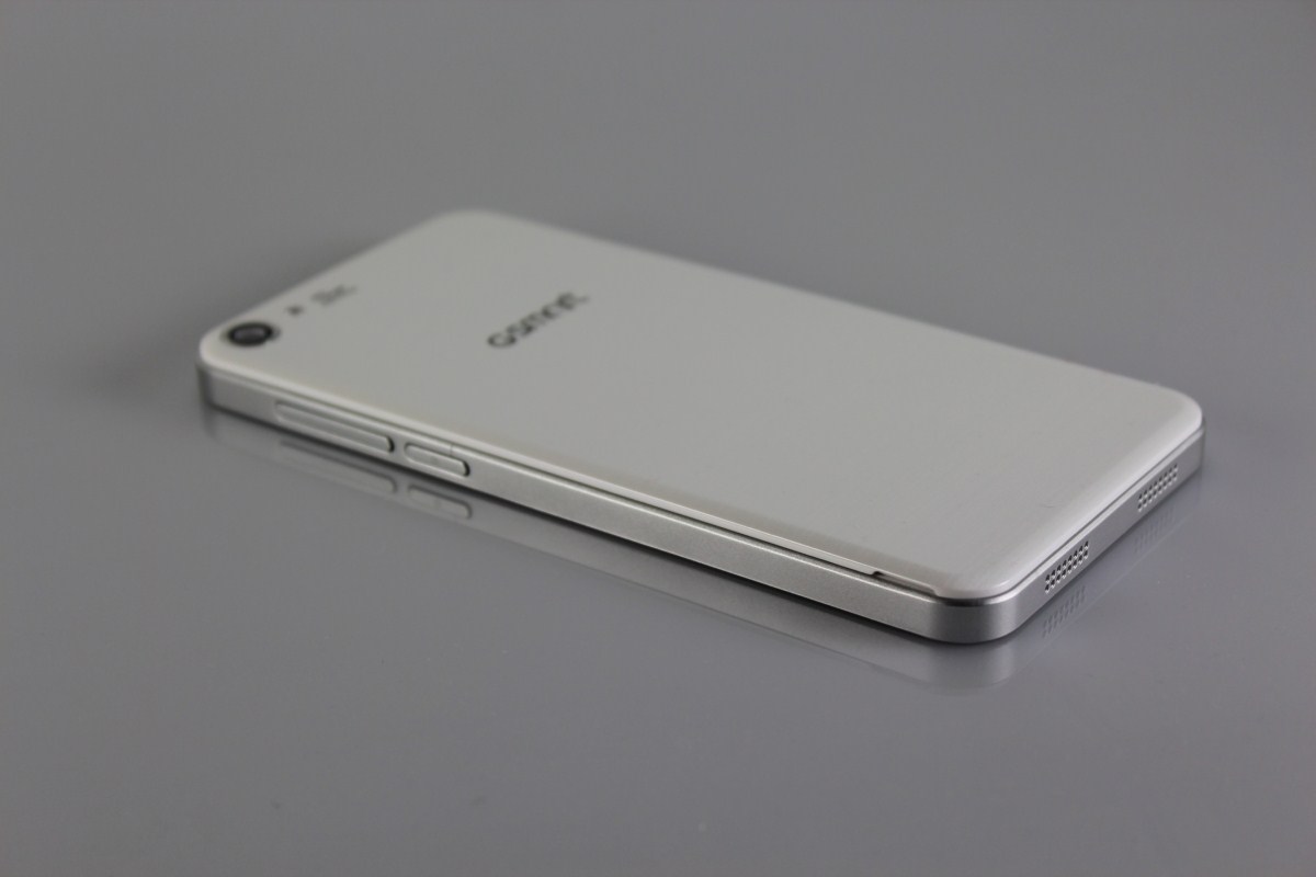 Totuși, GIGABYTE Sierra S1 iese în evidență prin liniile de design ce amintesc de … iPhone. Este înconjurat de o ramă din aluminiu ce contribuie la ideea de rezistență în timp, spatele său dă un grip bun. Are o textură plăcută și nu este un plastic din acela ieftin și rigid. Capacul bateriei se îndepărtează ușor și oferă acces la sloturile pentru microSD și la cele două cartele SIM. Când strângi telefonul mai puternic în mână nu scoate vreun sunet specific plasticelor montate nu tocmai perfect (seria GALAXY S are câteva exemple în acest sens).