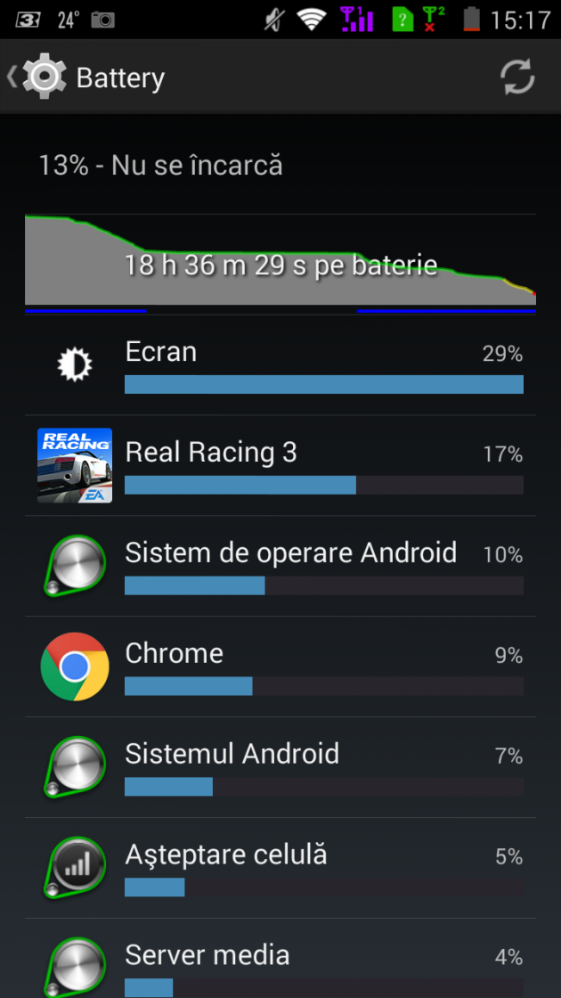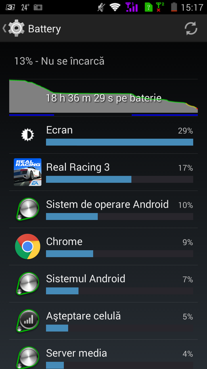 Jocuri ca Angry Birds merg fără probleme, dar supriza a venit când am instalat Real Racing 3. Mă așteptam să nu meargă deloc sau foarte greu. Ei bine, prin meniul jocului sau când încarcă traseele ce urmează, se mișcă încet. Adică, îți trebuie ceva răbdare. Dar odată ce cursa începe, totul decurge nesperat de bine, fără lag și plăcut, chiar dacă la un fps mai scăzut decât ți-ai dori. Totuși, pentru asta trebuie să cam închizi aplicațiile din fundal și să nu se facă actualizări sau alte descărcări.