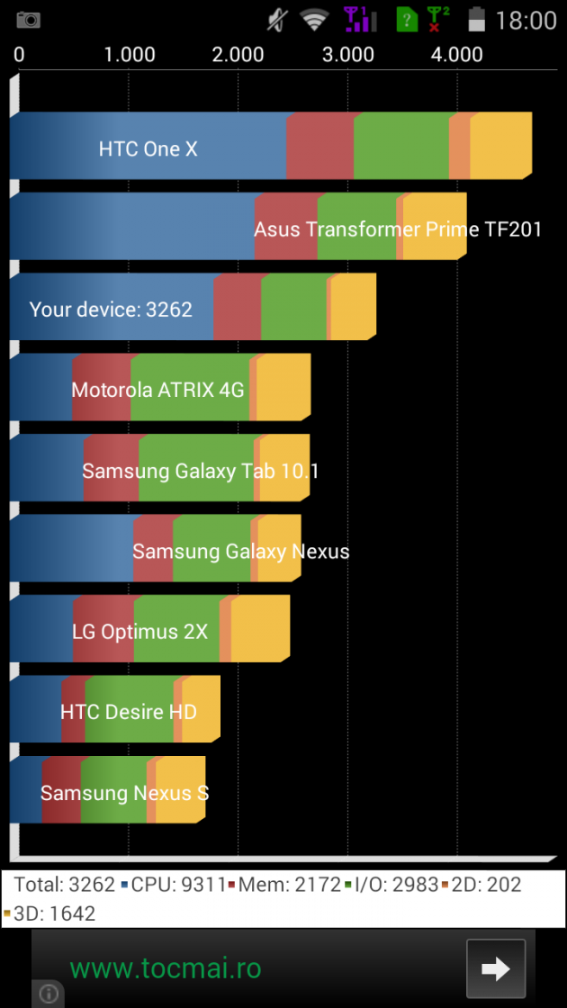 Bateria de 2800 mAh se descurcă onorabil din punctul meu de vedere. Autonomia unui device poate varia foarte mult în funcție de modul de folosire al utilizatorului și de aceea am decis să fac un test simplu: cu bateria încărcată la maxim am rulat continuu videoclipuri pe youtube. Ecranul a fost aprins tot timpul, la luminozitate maximă, iar sunetul a fost de asemenea setat la 100%. În acest mod, prin Wi-Fi conectat, acumulatorul a fost epuizat în 6 ore. Inițial, nu mi-a părut o valoare prea bună, dar dacă aș fi folosit 50% din lumina ecranului și din puterea speaker-ului, probabil aș fi stors vreo 7-8 ore.