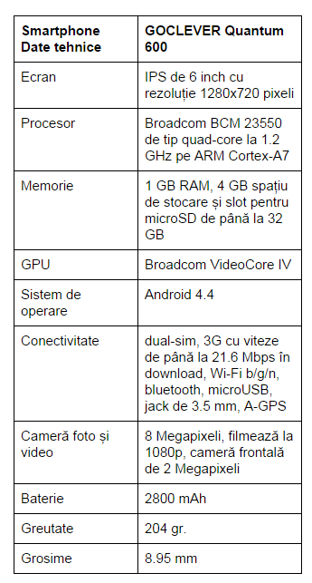 GOCLEVER Quantum 600 reprezintă propunerea companiei poloneze pentru un phablet low-price cu ecran de 6 inch. Terminalul de față se deosebește de concurenții săi ce folosesc procesoare MediaTek sau Qualcomm prin adoptarea unui quad-core de proveniență Broadcom.