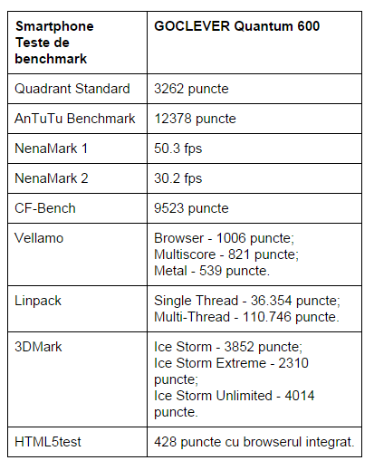 A trecut prin testele de benchmark și GOCLEVER Quantum 600, iar rezultatele le găsiți în tableul de mai jos