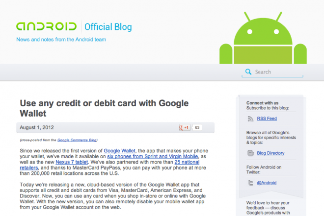 Până acum Google utiliza googlemobile.blogspot.ro pentru a realiza anunţuri oficiale cu privire la sistemul de operare Android. La cererea consumatorilor, Google a realizat officialandroid.blogspot.ro, locul unde veţi afla informaţii despre serviciile şi produsele Google de la echipa Android. Aşa că dacă sunteţi pasionaţi să aflaţi ce mai face micul roboţel verde, de ieri aveţi un canal oficial care să vă ţină la curent cu toate noutăţile. Prima informaţie de pe acest nou blog este despre un update făcut portofelului virtual Google (portofel care nu este disponibil la noi în ţară).