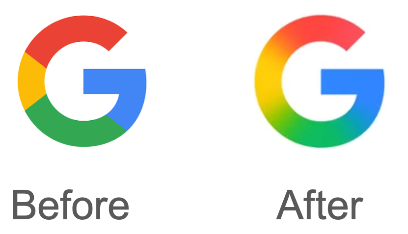 Deşi fontul sans-serif al literei G a rămas neschimbat, culorile beneficiază acum de o trecere gradient. În logo-ul vechi se foloseau patru culori delimitate destul de clar, iar acum prin noul stil tip gradient apar mai multe variaţii ale acestora, inclusiv urme palide de portocaliu, turcoaz etc.