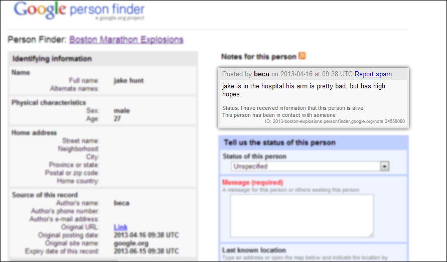 Google person finder nu este un proiect nou. Acesta a fost lansat în 2010 în urma tragediei din Haiti. Din fericire, în urma atacului terorist din Boston, proiectul şi-a redovedit utilitatea.