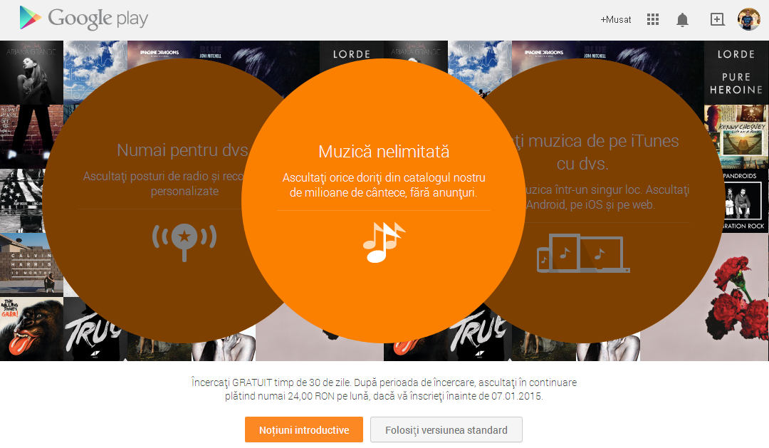 Google România a anunţat că începând de astăzi, Google Play Music este disponibil şi în România. Pentru o sumă modică, puteţi alege din peste 25 milioane de piese puse la dispoziţie de către Google sau puteţi sincroniza muzica personală de pe gadget-urile pe care la folosiţi.