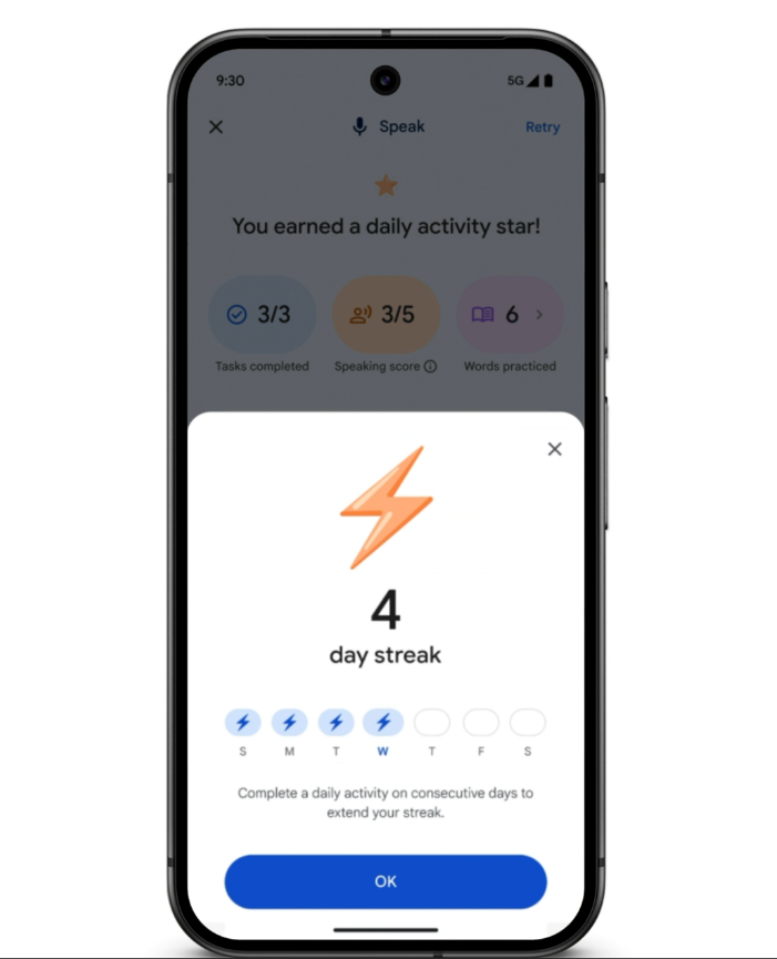 Ultima noutate adusă în această actualizare se referă la îmbunătăţirea instrumentelor de învăţare cu feedback mai bun. „Profesorul Google” devine astfel mai util, iar ritmul de învăţare a unei limbi străine poate creşte. Cu acest update ne putem testa şi noi, românii, cunoştinţele ce au legătură cu limba engleză, pe 3 niveluri: începător, intermediar sau avansat.