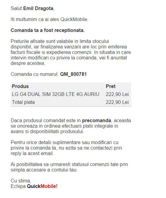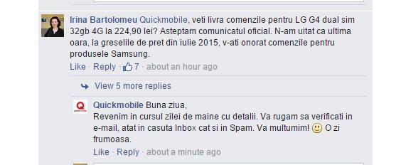 QuickMobile a mai avut greșeli de preț în 2015 și la momentul respectiv a onorat comenzile. La fel se întâmplă acum cu LG G4 dual-sim.