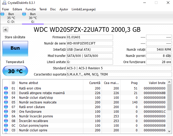 - format 2.5 inch, alimentare la DC 5V și 900 mA;