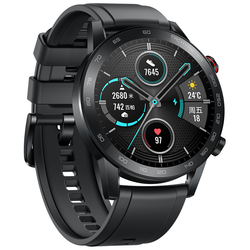 Honor MagicWatch 2 vine cu display circular AMOLED de 1.2 inci şi rezoluţie de 390 x 390 pixeli (modelul de 42mm), respectiv 1.4 inci şi rezoluţie de 454 x 454 pixeli (modelul de 46mm), procesor Kirin A1, 2 GB capacitate de stocare pentru muzică, certificare 5ATM ce atestă rezistenţa la scufundări de până la 50 de metri adâncime, bluetooth, senzor pentru puls, GPS, GLONASS, NFC şi o baterie de 455 mAh ce promite o autonomie de până la 14 zile (modelul de 46mm).