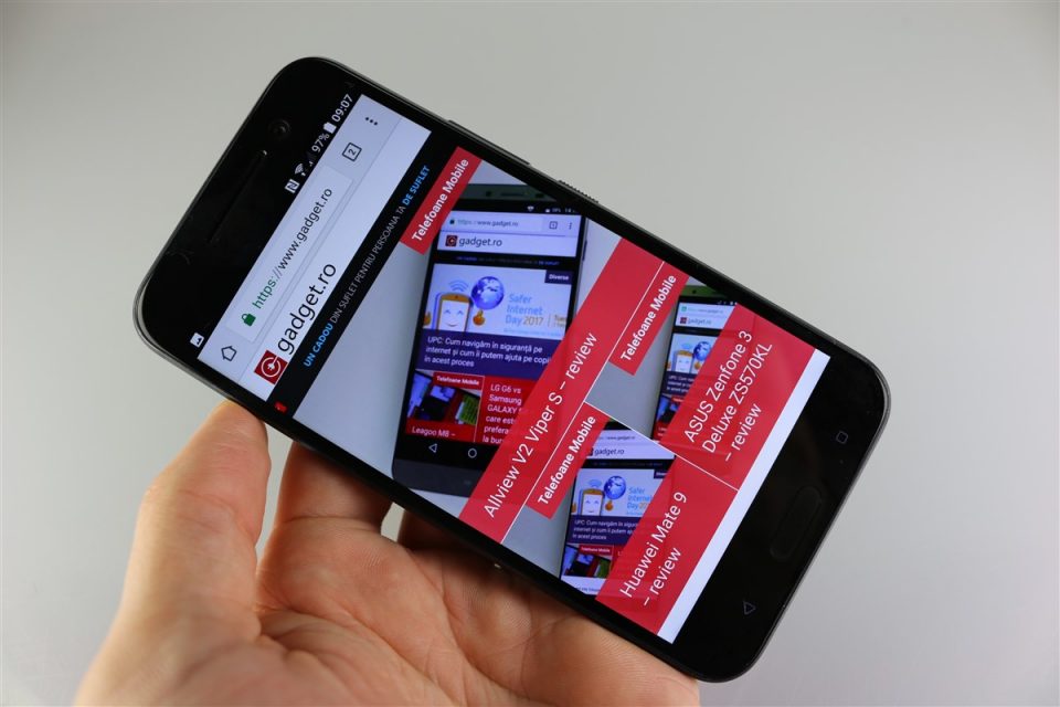 HTC 10 l-aș considera a fi un smartphone elegant, ce imprimă ideea de rezistență în timp, la utilizare îndelungată. Nu pot să spun că te atrage de la prima vedere, dar în niciun caz nu l-aș considera fi un dispozitiv fără grad de atracție.