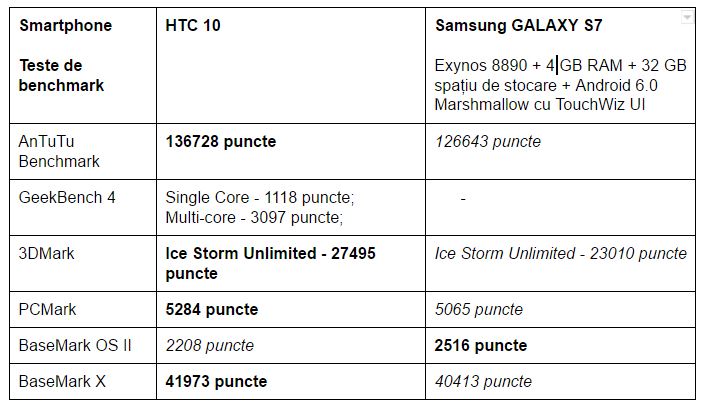 Cred că este primul HTC din divizia flagship lansat în ultimii 2 – 3 ani care se descurcă cât de cât onorabil.. HTC One M8 și M9 erau mediocre din acest punct de vedere, HTC 10 l-aș cataloga modest spre bun. Trece testul unei zile de utilizare, de dimineața până seara doar pe utilizare medie spre intensivă. Bateria beneficiază de QuickCharge 3.0, iar de la 0 la 50% îi trebuiesc 30 de minute pentru a se reîncărca.