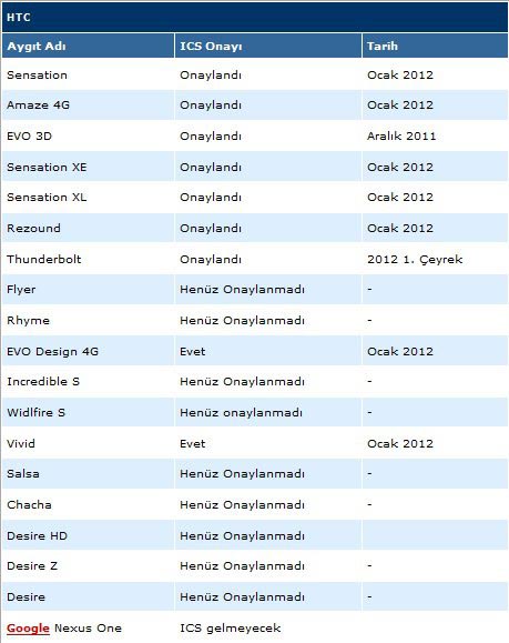 HTC nu a ieşit bine din ultimul trimestru al lui 2011 şi încearcă pornească cu dreptul în 2012. Pagina de facebook a HTC din Turcia a anunţat că ar sosi un update la Android Ice Cream Sandwich pentru şapte telefoane chiar din ianuarie 2012. LG sau Sony Ericsson au oferit un calendar de update, dar abia prin aprilie, mai sau iunie 2012.