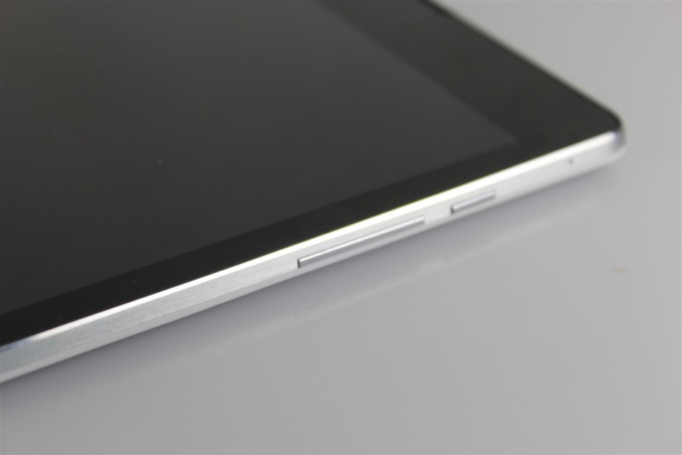 În partea superioară se află jack-ul de 3.5 mm, în lateral dreapta dați de power și reglarea volumului, la bază de portul microUSB, nu are slot pentru cardurile microSD, din păcate. Ar fi suplimentat spațiul de stocare de 16 GB. La momentul actual consider că nicio tabletă respectabilă din zona premium nu ar trebui să vină cu un spațiu de stocare sub 32 GB, mai ales dacă nu are slot pentru extensie.