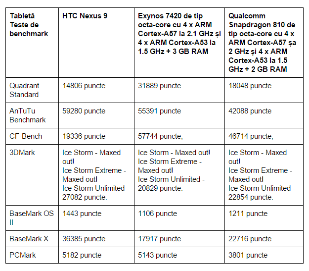 A trecut prin mai multe teste de benchmark, iar rezultatele le-am notat în tabel.