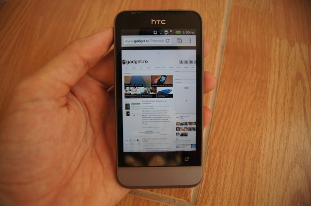 Vă spuneam la capitolul design că nu-mi place cum au integrat display-ul. Acesta nu se pierde în carcasă, ci este pus cumva peste. La bază se vede acest lucru cel mai pregnant și de multe ori când accesezi tastele capacitive de sub ecran vei simți diferența de nivel dintre carcasă și display. Mi se pare o greșeală și este primul HTC la care remarc dispunerea diferită a display-ului, mă rog a sticlei gorilla glass ce-l protejează. Am uitat să precizez că au ales să pună un display mai lung, forma de dreptunghi este pregnantă și de aici și alura telefonului.
