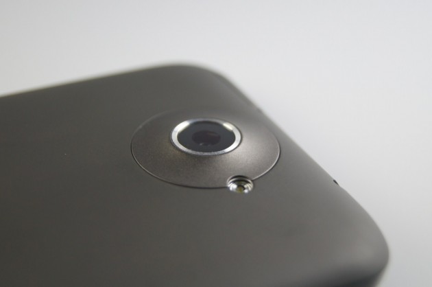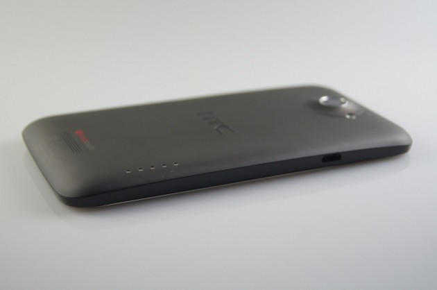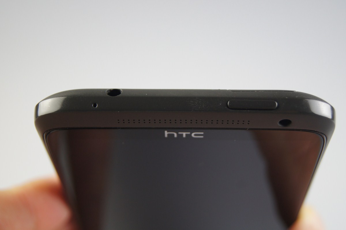 Carcasa din policarbonat este ușor curbată, display-ul este drept fără vreo curbură la bază ca la Samsung Galaxy Nexus. Nu se oferă acces la baterie, iar pentru accesul către cartela microSIM dați în pachet de un fel de agrafă care se dovedește de ajutor spre a scoate slotul pentru microSIM în exterior, o soluție elegantă aleasă de HTC și care nu strică linia de design a smartphone-ului taiwanez.