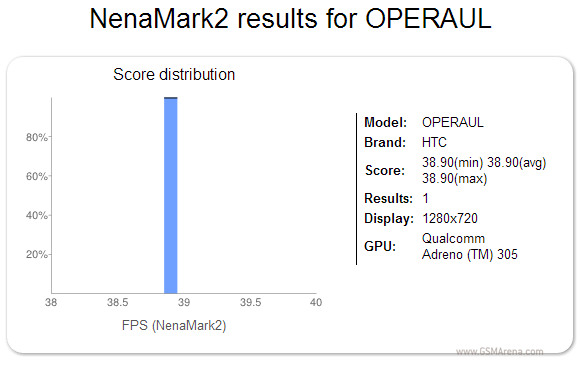 Numele de cod al smartphone-ului se pare că este HTC Opera UL şi va fi un smartphone middle-end. Mai exact, conform unor rezultate din NenaMark2 se pare că device-ul va dispune de un procesor dual-core tactat la 1,4 GHz, procesor grafic Adreno 305 şi un display HD. De asemenea, smartphone-ul va rula versiunea de Android 4.1.1 Jelly Bean.