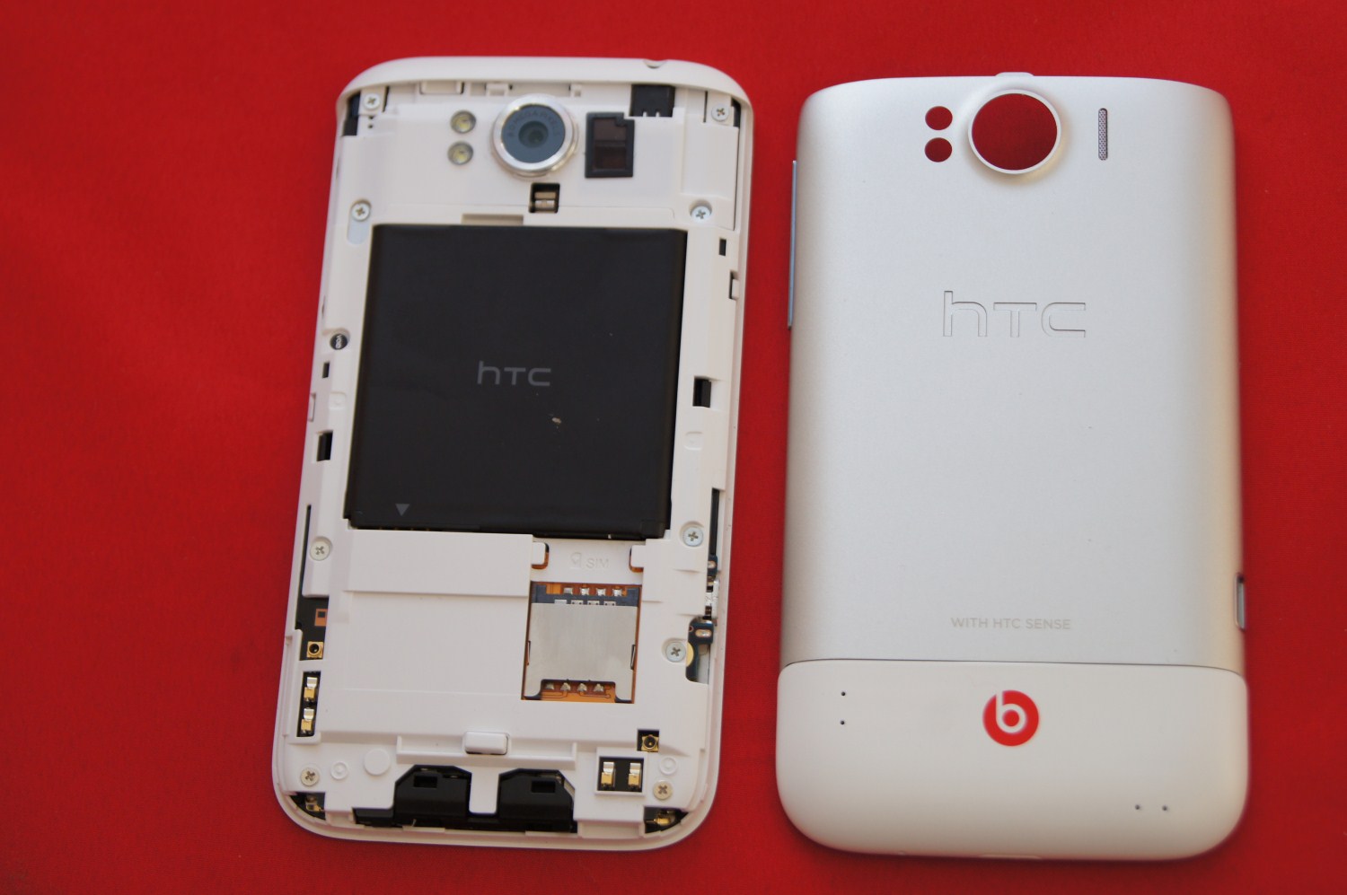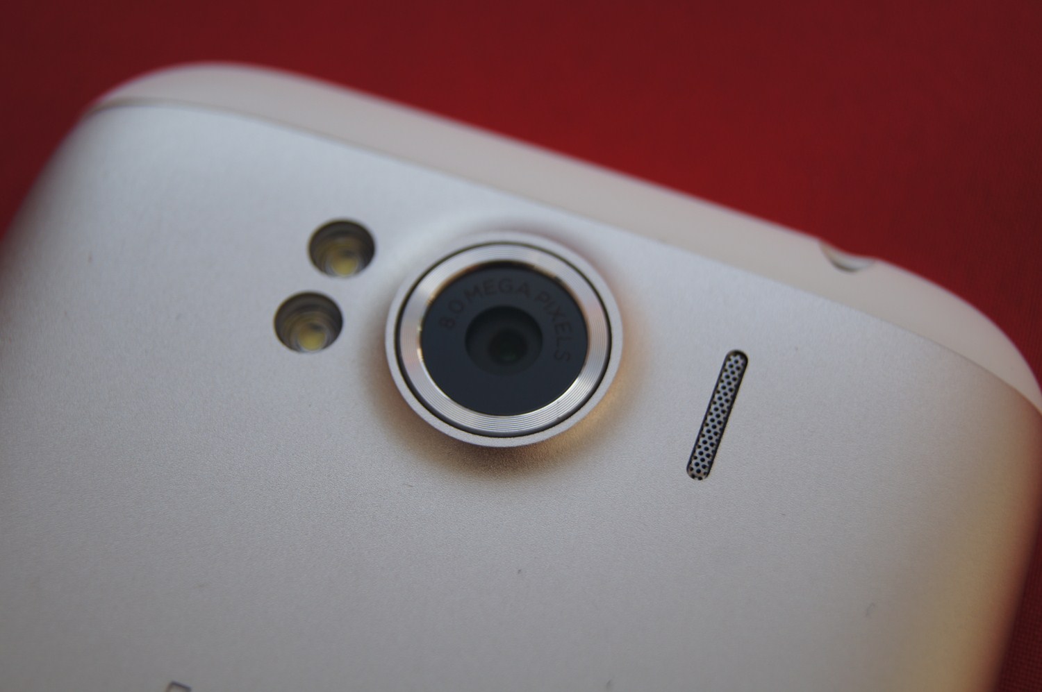 Pe spate dați de camera de 8 Megapixeli cu un senzor destul de mare. Am făcut comparația gândidu-mă la HTC Sensation XE ce are tot o cameră de 8 Megapixeli, dar de dimensiune mai redusă. Mai multe detalii la capitolul dedicat. La baza carcasei se află logo-ul Beats pe roșu care contrastează plăcut cu albul și argintiul de pe spate.