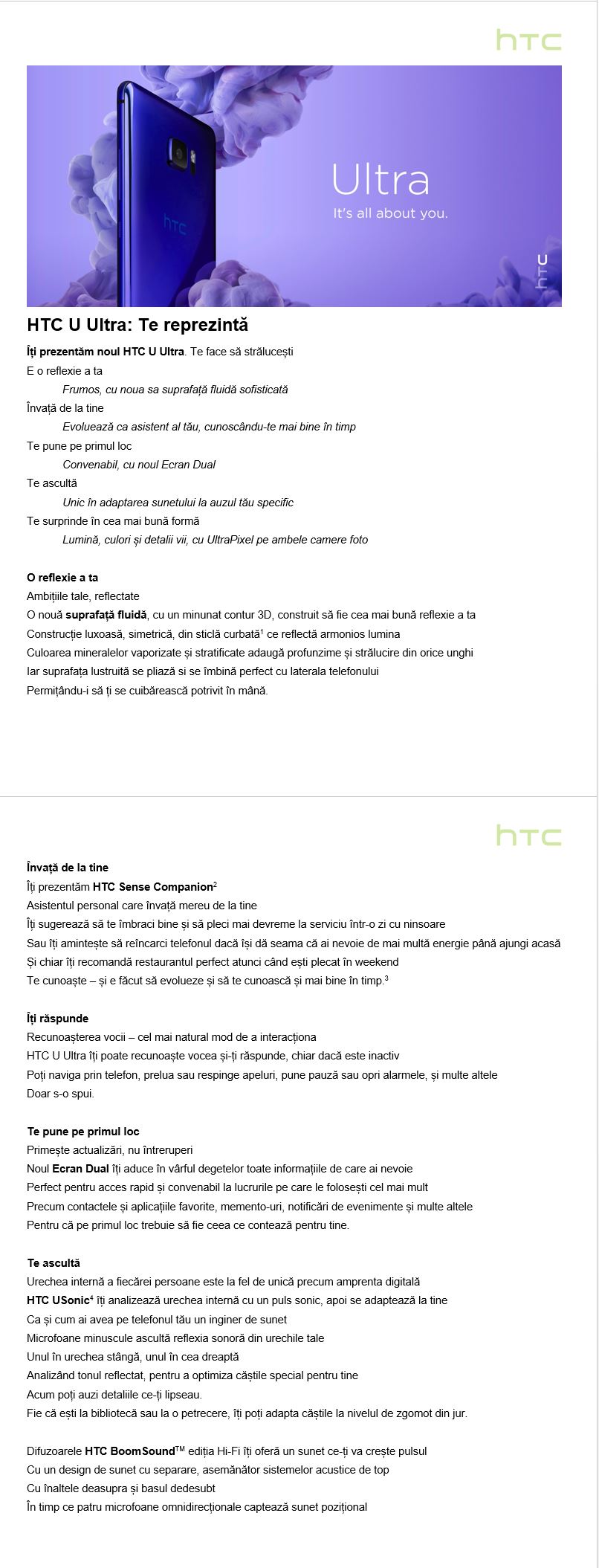 Apropo, de la HTC One Max, compania taiwaneză nu a mai avut un phabet premium în portofoliu. Mai este ceva ce mi-a scăpat: Corning Gorilla Glass 5 – cred că este primul smartphone cu această sticlă de protecție, iar varianta de 128 GB sosește cu sticlă de safir, alt element de noutate față de ceea ce există în piață.