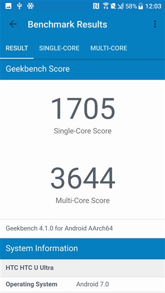 Snapdragon 821 este cel mai bun pachet hardware din 2016 și nu are nicio problemă în 2017 spre a rula cele mai noi jocuri și aplicații din Google Play. Strict pentru pasionați de cifre și informații din domeniu: Qualcomm Snapdragon 821 cu 2 nuclee Kryo la 2.15 GHz și alte 2 nuclee la 1.6 GHz. Observați că avem un dispozitiv ușor subtactat, OnePlus 3T îl are Snapdragon 821 cu nuclee mai puternice la 2.35 GHz. Asta nu afectează performanțele sale, presupun că HTC și-a propus să mențină temperatura mai bine sub control, în sesiunile în care lucrează în mod susținut.