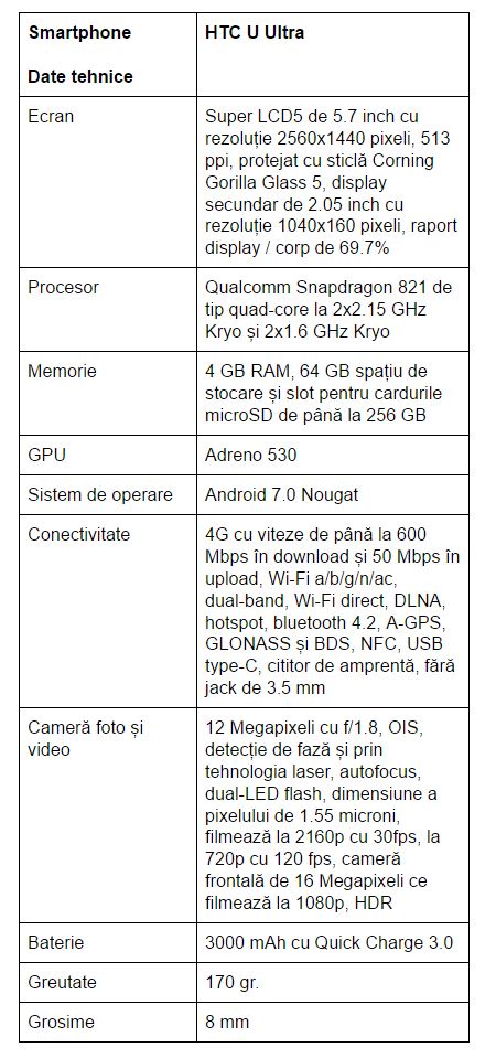 Nu știu dacă vă mai amintiți de HTC One max lansat în octombrie 2013, phablet de 5.9 inch ce mi-a plăcut mult la momentul respectiv ( construcție, interfață, sunet etc). HTC nu cred că a realizat cine știe ce vânzări, pentru că abia în ianuarie 2017 a venit un urmaș pe diagonală mare. Mă rog, HTC U Ultra aduce un display principal de 5.7 inch și altul secundar de 2.05 inch, în stilul cu care ne-au obișnuit LG V10 și LG V20.