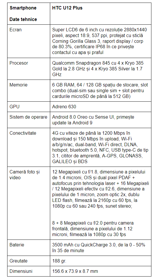 HTC U12 Plus este propunerea companiei taiwaneze pe segmentul smartphone-urilor premium. Au adunat experiența de-a lungul anilor + noutăți prin care să-l individualizeze față de concurență.